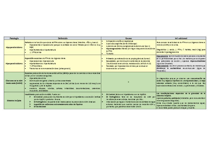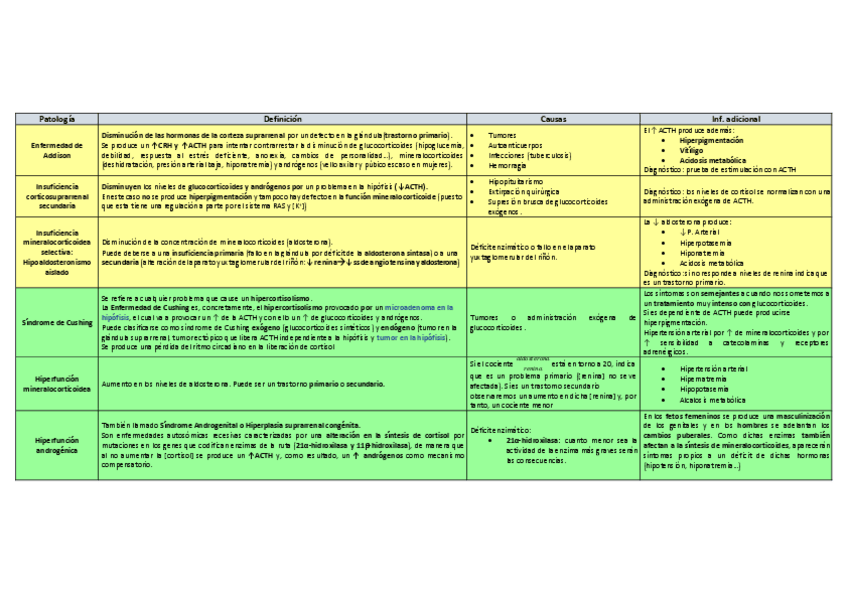 Patologías: tablas resumen