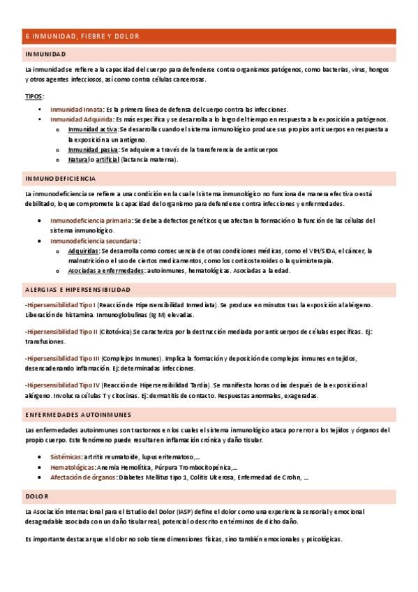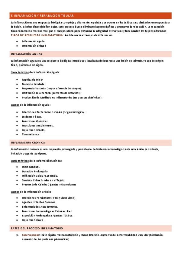 Tema 5: Inflamación y reparación tisular. Inmunidad, fiebre y dolor. Equivale a los Temas 5 y 6 de la nueva guía de la asignatura (temario de 35 temas).