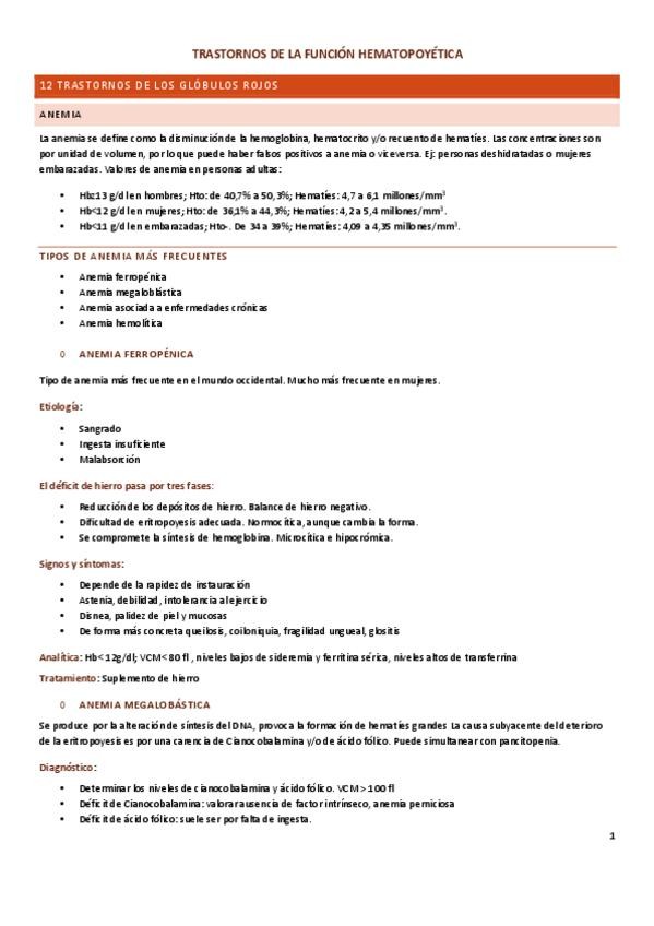 Tema 9: Trastornos de la función hematopoyética. Equivale a los temas 12, 13 y 14 de la nueva guía de la asignatura (temario de 35 temas).