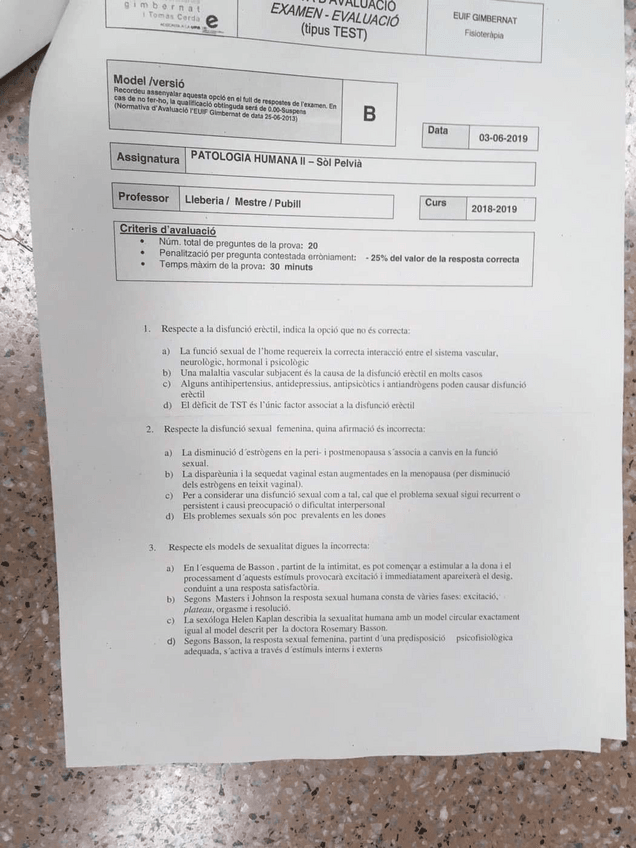 He publicado nuevos examenes de 3º Fisioteràpia del sòl pelvià: EXAMEN 2019