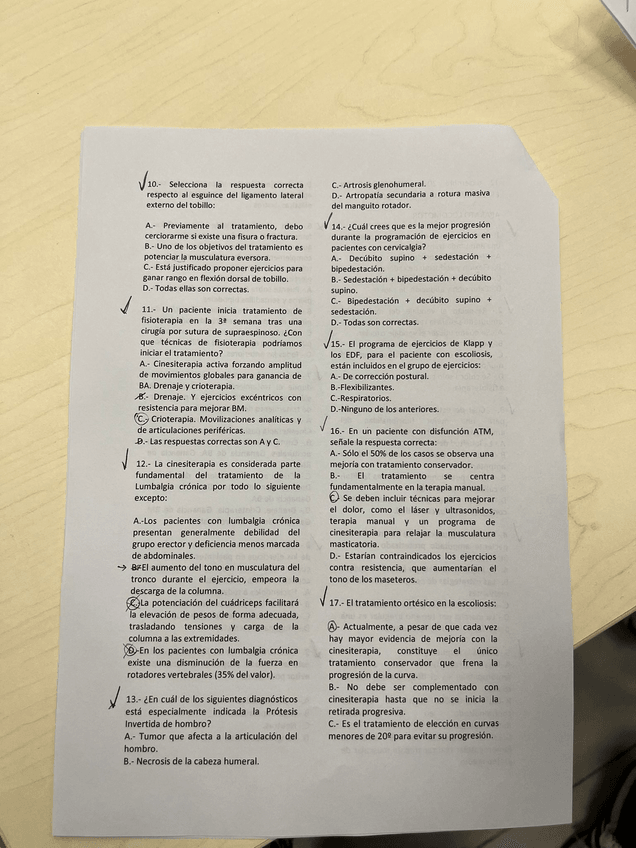 He publicado nuevos examenes de 3º Fisioterapia en Especialidades Clínicas: Aparato Locomotor: EXAMEN-2019. Respuestas al final.docx