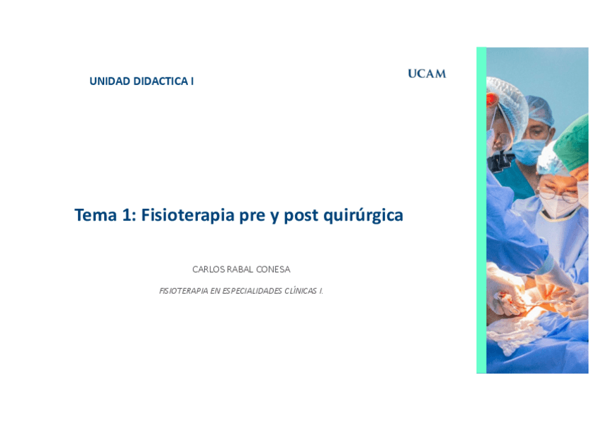 He publicado nuevos apuntes de 2º Fisioterapia en Especialidades Clínicas I: Tema-1-Pre-y-post-quirurgica.pdf