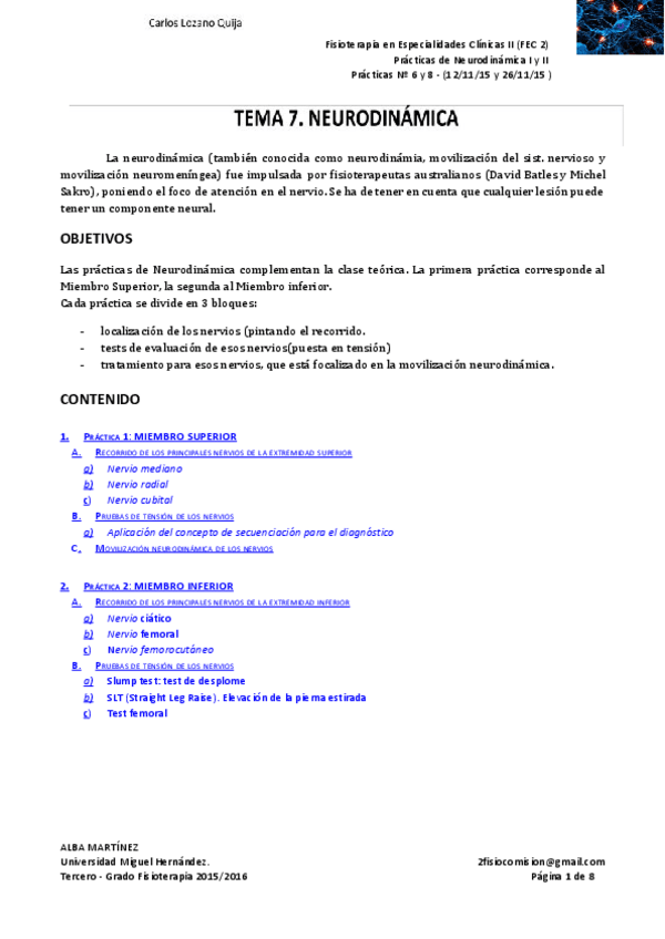 He publicado nuevos practicas de 3º Fisioterapia en Especialidades Clínicas II: Neurodinamica-Baja-resolucion.wmv