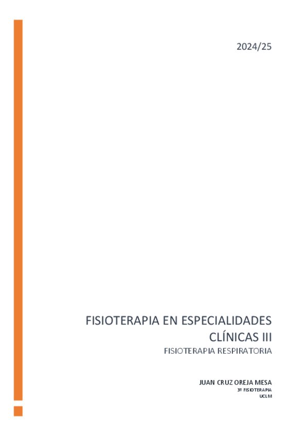 He publicado nuevos apuntes de 3º Fisioterapia en Especialidades Clínicas III : BLOQUE I. Introducción a la fisioterapia respiratoria