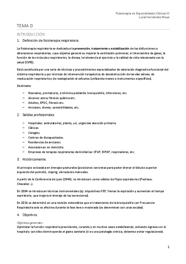 BLOQUE I. Introducción a la fisioterapia respiratoria