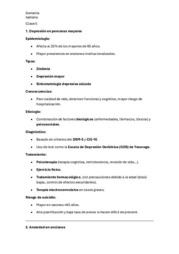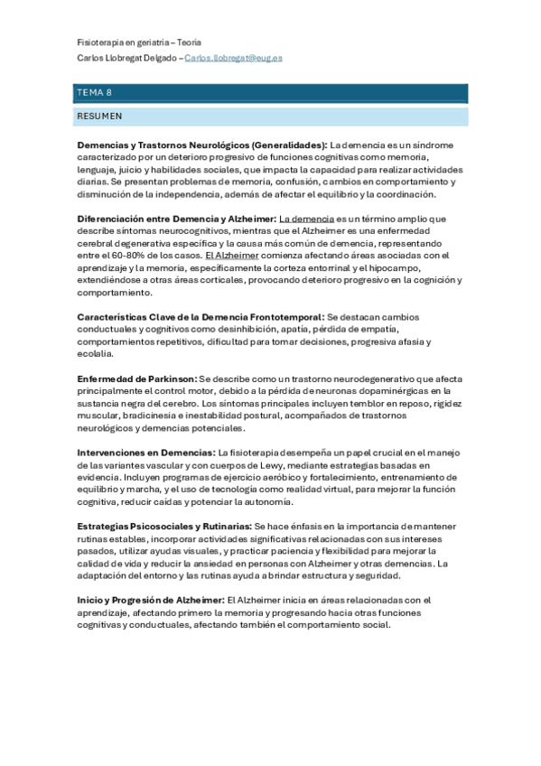Resumen, preguntas para repasar la teoria - geriatria- Carlos - 2024-2025