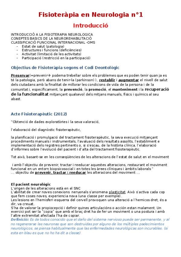He publicado nuevos apuntes de 3º Fisioteràpia en Neurologia: Resumen-1-Neuro.pdf