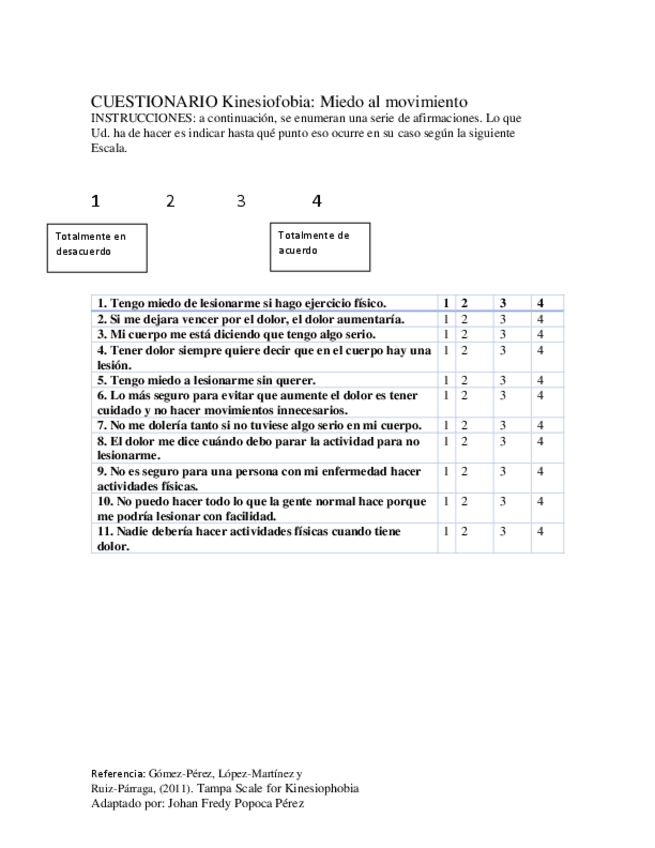 He publicado nuevos apuntes de 8º Fisioterapia en Pediatría y Geriatría: Test-Kinesiofobia.pdf