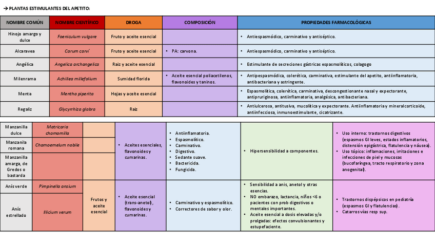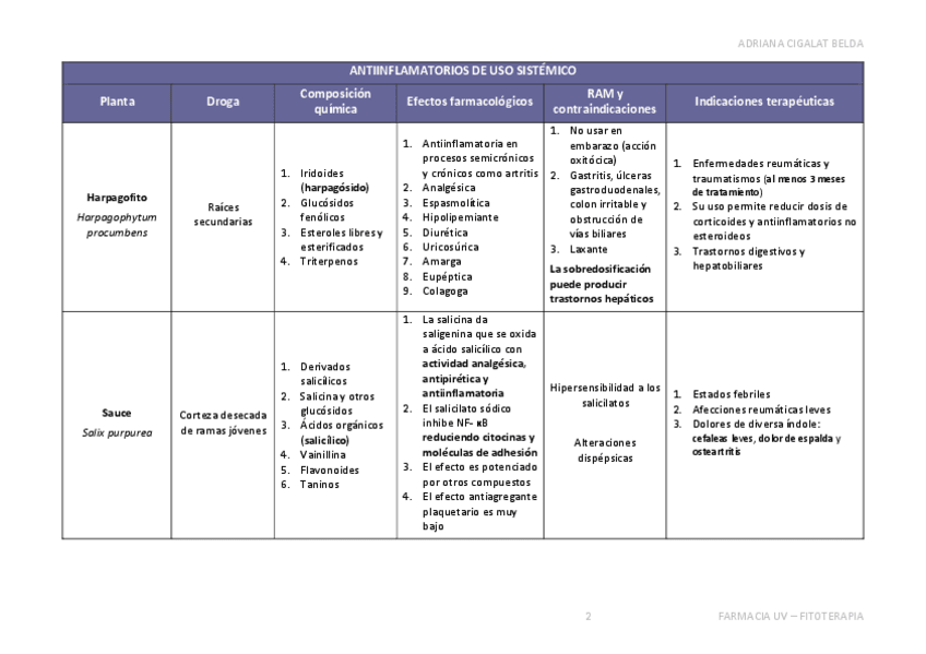 He publicado nuevos apuntes de 5º Fitoterapia: TABLAS EXAMEN