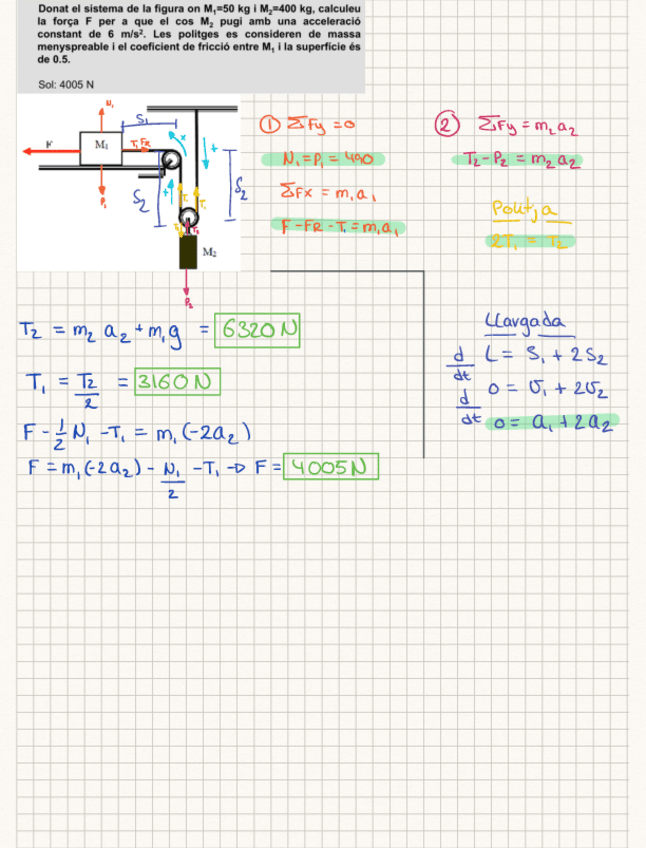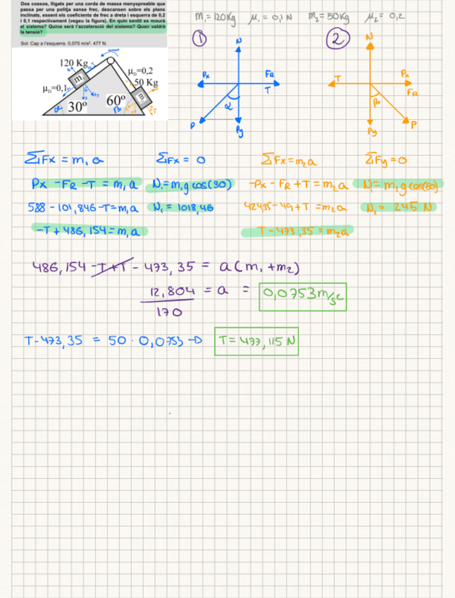 exercicis finals del T3 sobre les lleis de Newton, l'impuls, i les forçes de fricció tots totalment corregits