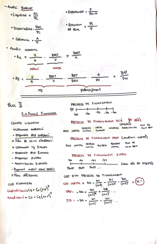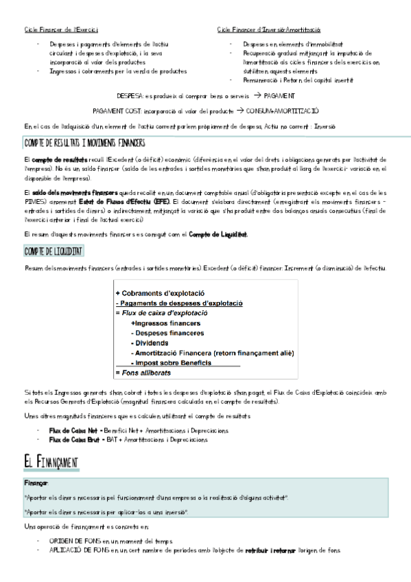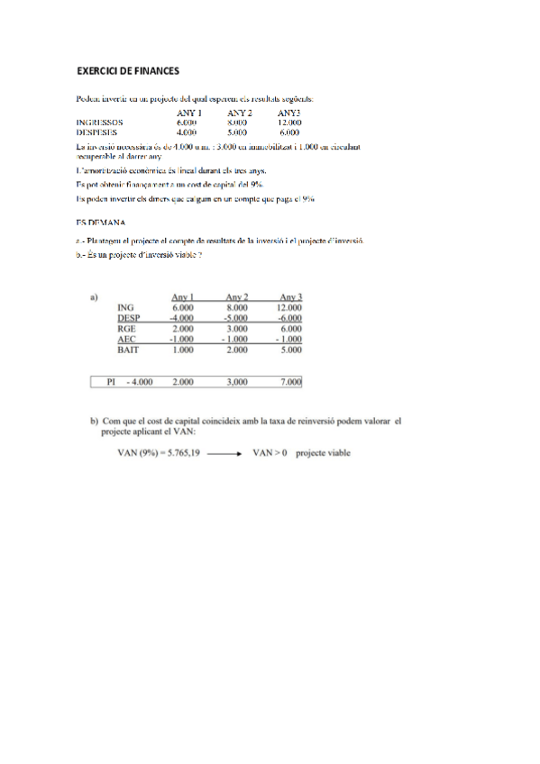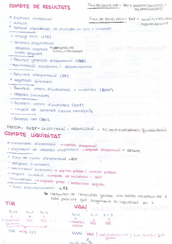 compte de resultats, de liquiditat, TIR, VAN, Finançament intern, propi, aliè, global, projecte de finançament viable, payback simple i descomptat