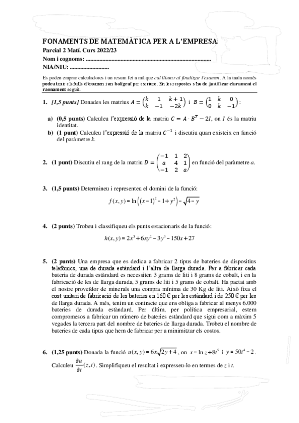 He publicado nuevos examenes de 1º Fonaments de Matemátiques per a L'empresa: Parcial-2.pdf