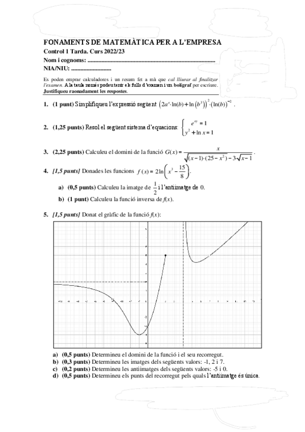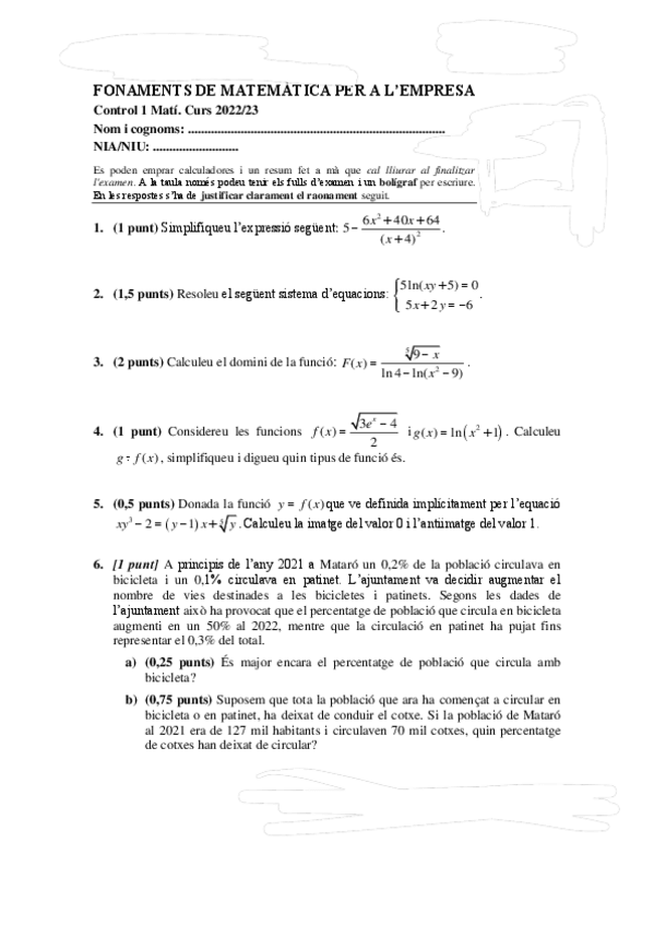 He publicado nuevos examenes de 1º Fonaments de Matemátiques per a L'empresa: Control-1.pdf