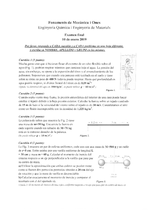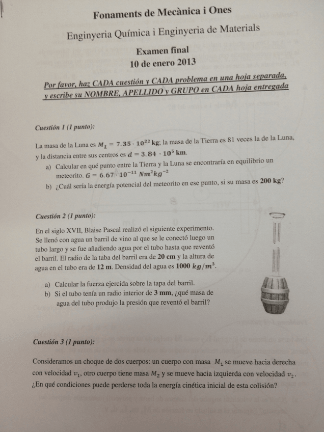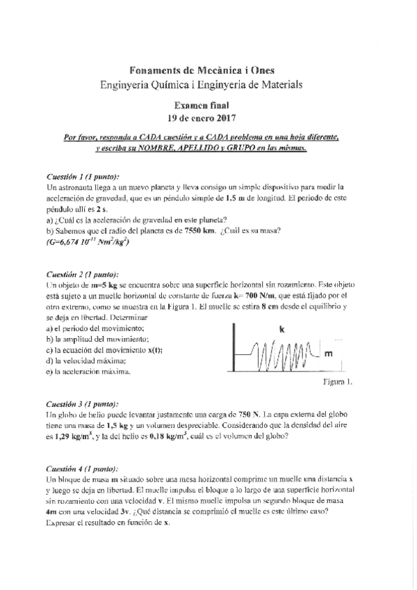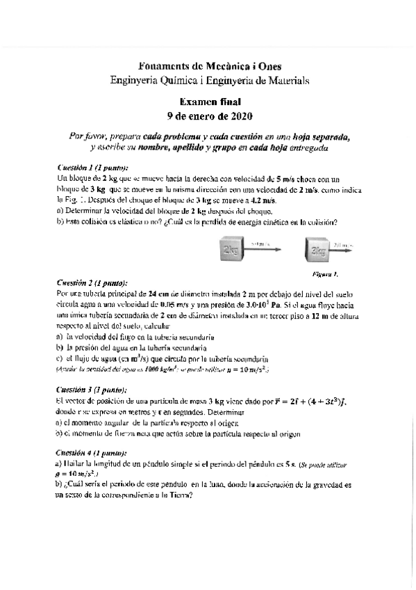 He publicado nuevos examenes de 1º Fonaments de mecànica i ones: Final