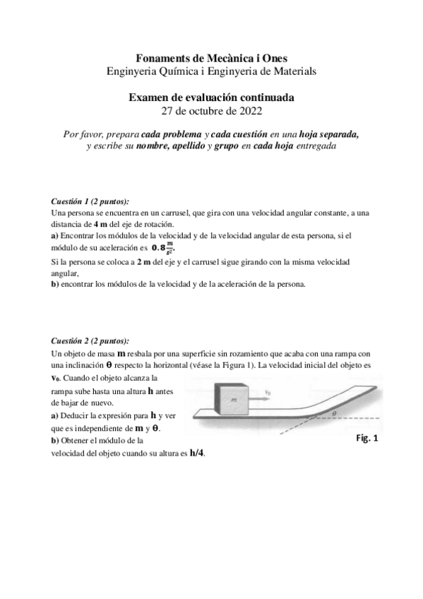 He publicado nuevos ejercicios de 1º Fonaments de mecànica i ones: T8-ejemplosandejercicios-finales.pdf