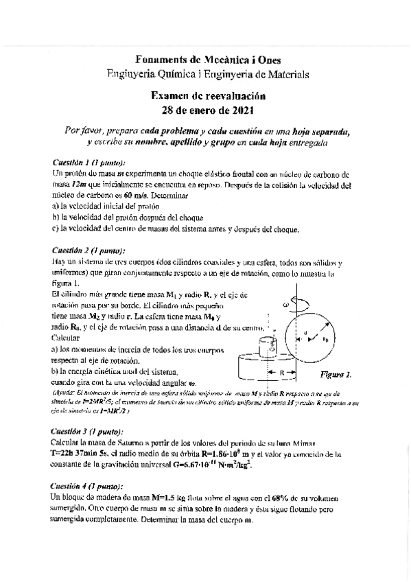 He publicado nuevos examenes de 1º Fonaments de mecànica i ones: re-evaluación