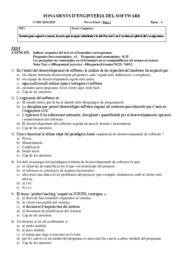 He publicado nuevos examenes de 1º Fonaments d'Enginyeria del Software: SolExamenF-P1A-2025.pdf