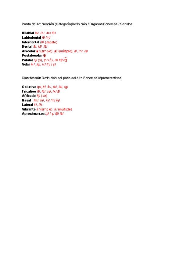 En este documento he recopilado todas las definiciones de los conceptos desde el tema 1 hasta el tema 6 de fonética y fonología. Además, también hay un resumen de los fonemas y alófonos de las vocales y de las consonantes.