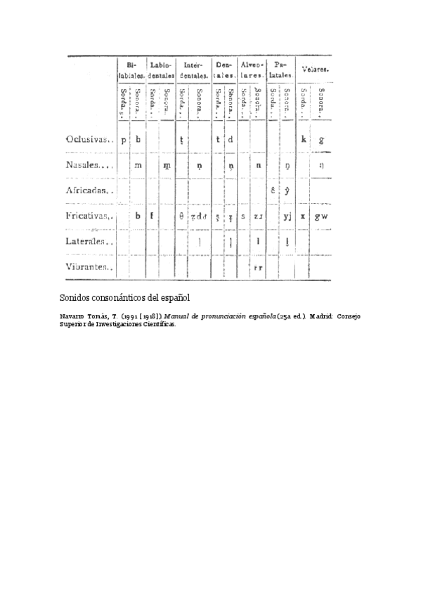 Definiciones y tablas de las consonantes en fonética