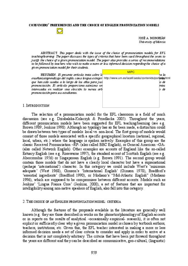 He publicado nuevos apuntes de 1º Fonética y fonología del inglés I: MompensConsumersPreferencesandtheChoiceofEnglishPronunciationModels.pdf