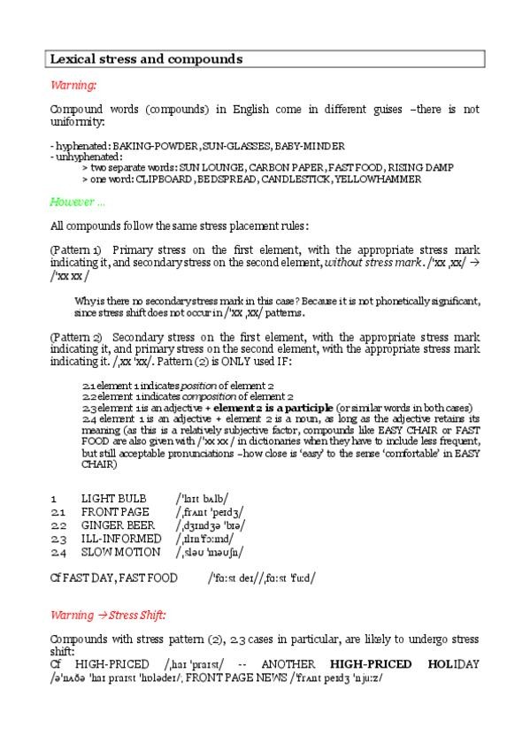 He publicado nuevos apuntes de 1º Fonética y fonología del inglés I: 1-Lexical-stress-and-compounds.pdf