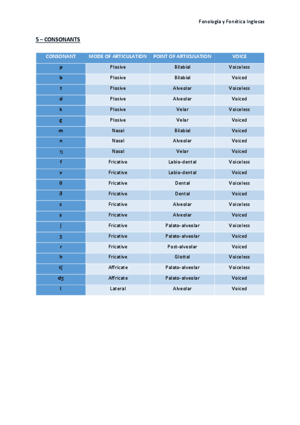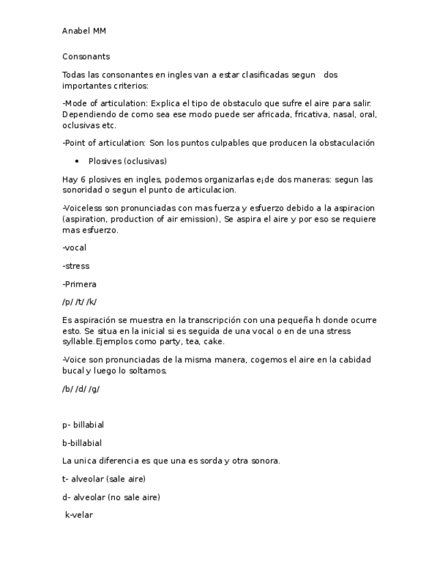 He publicado nuevos apuntes de 1º Fonología y fonética inglesas: Consonants.rtf