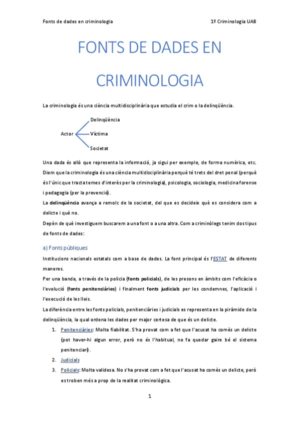 Apuntes de la asignatura fonts de dades en criminologia, de primero de Criminología en la Universidad Autónoma de Barcelona de 2016. Los apuntes estan en catalán, aunque estoy dispuesta a traducir lo que haga falta si alguien lo necesita.