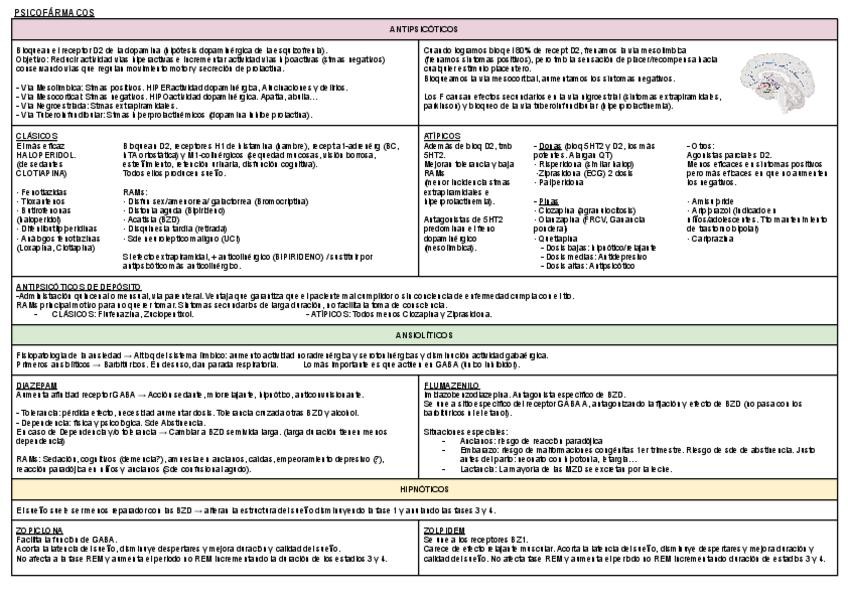 Resumen de psicofarmacos, son dos hojas, os lo podéis estudiar de aquí. Ta bien otros par de temas poco importantes resumidos.