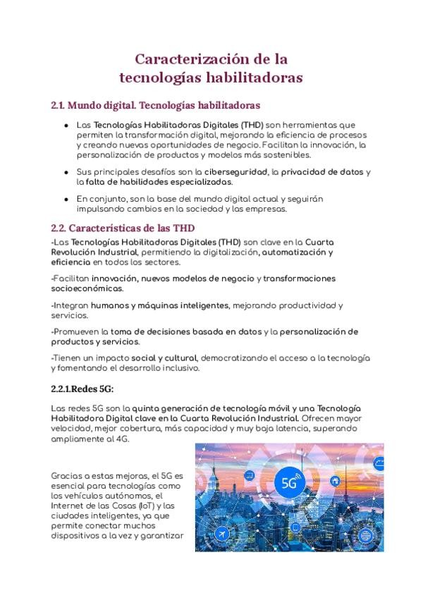 Resumen tema 2 de Digitalización aplicada a los sectores productivos- Caracterización de las tecnologías habilitadoras