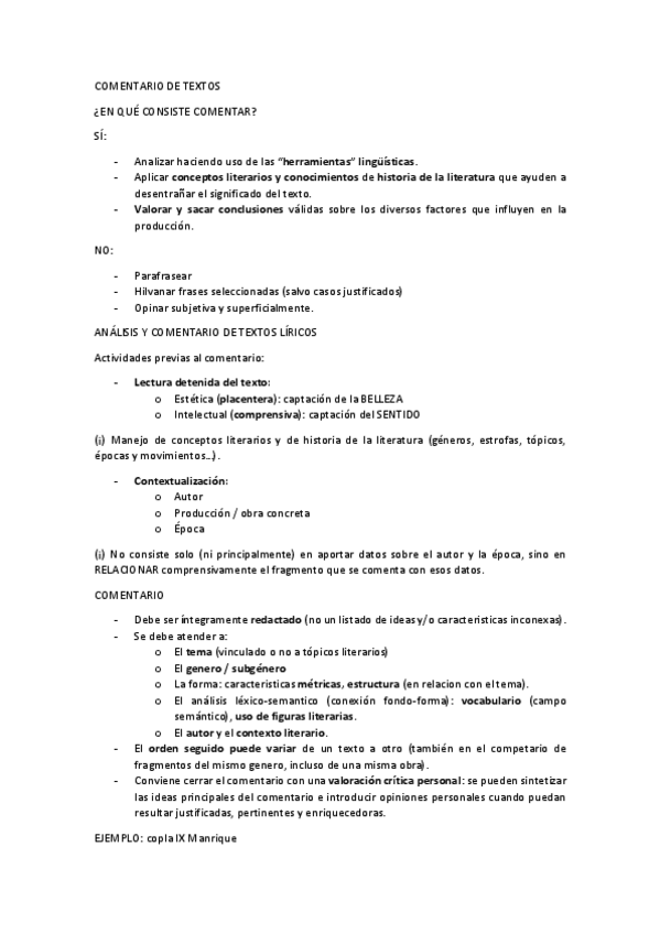 SOBRESALIENTE EN LA ASIGNATURA. Apuntes sobre los comentarios de texto tomados en clase.