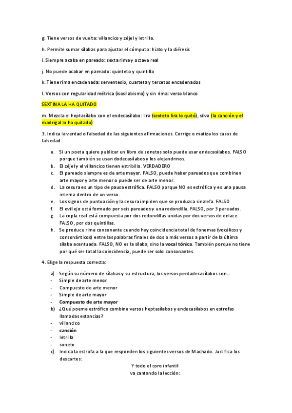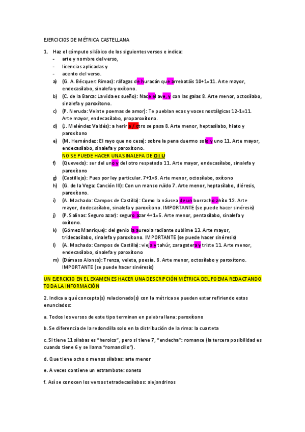 Ejercicios sobre EJERCICIOS DE MÉTRICA CASTELLANA. Resueltos y con apuntes sobre qué puede entrar en el examen