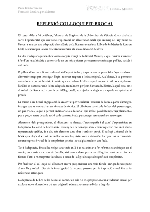 He publicado nuevos practicas de 2º Formación Literaria Para Maestros: Reflexio-colloqui-Pep-Brocal.pdf