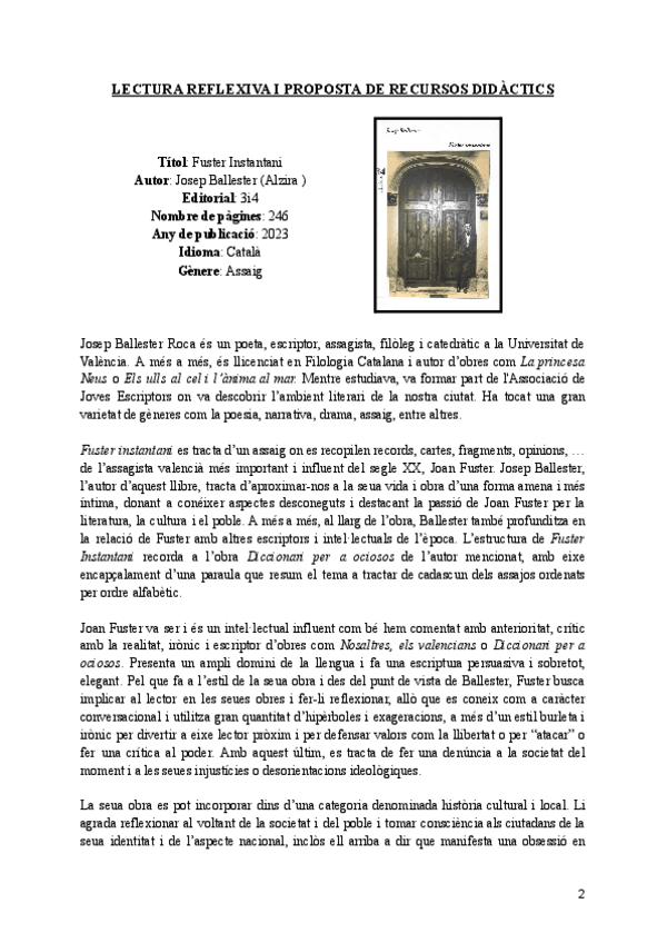 He publicado nuevos practicas de 2º Formación Literaria Para Maestros: Lectura-reflexiva-i-recursos-didactics-Fuster-instantani.pdf