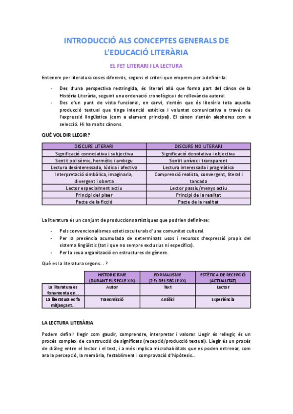 FORMACIÓ LITERÀRIA APUNTS