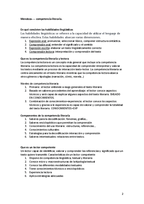 Resumen sobre textos trabajados en clase. Preparación para el examen. Sotomayor, Cassany Mendoza, Cerrillo...