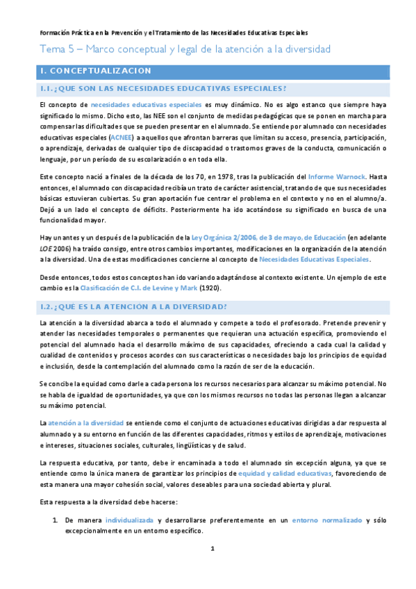 He publicado nuevos apuntes de 3º FORMACIÓN PRÁCTICA EN LA PREVENCIÓN Y TRATAMIENTO DE LAS NECESIDADES EDUCATIVAS ESPECIALES: TEMA-1-PT.pdf