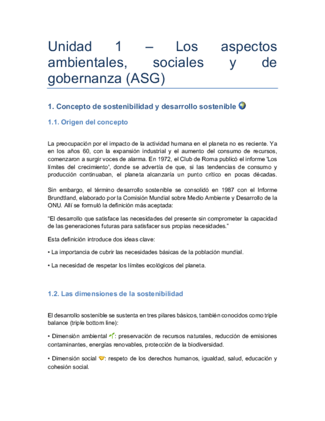 Apuntes de la asignatura de Sostenibilidad de la Unidad 1 y 2