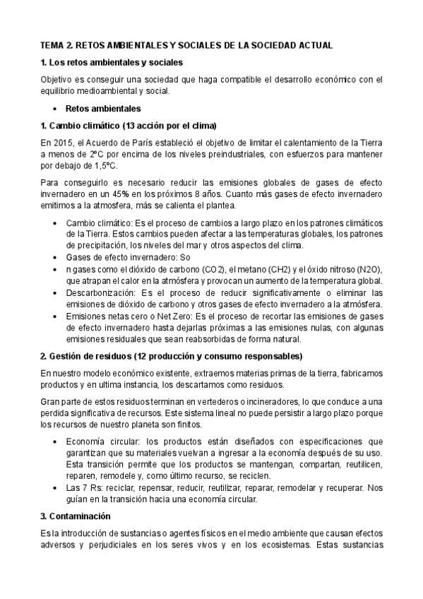 Tipo test para repasar Tema 2-Retos ambientales y sociales de la sociedad actual