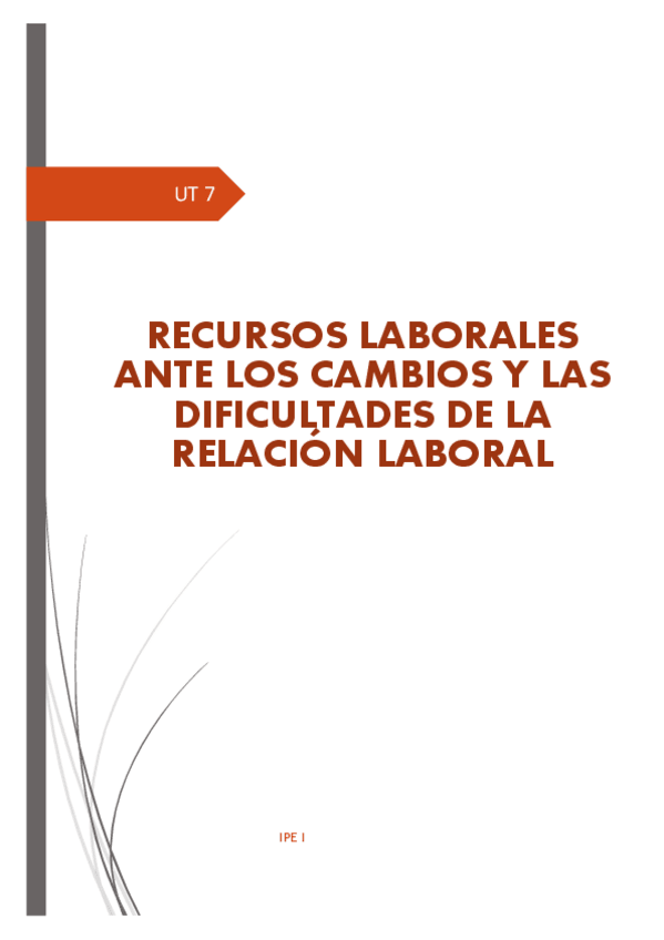 TEMA 7: RECURSOS LABORALES ANTE LOS CAMBIOS Y LAS DIFICULTADES DE LA RELACIÓN LABORAL