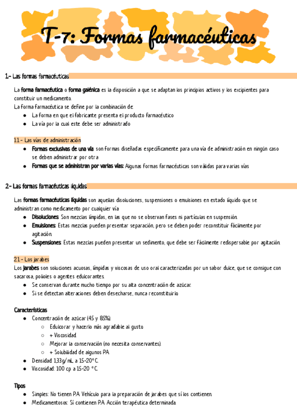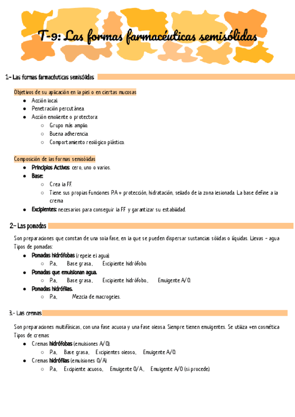 Apuentes realizados por Celia Montañas. Es un esquema del tema 3 de formulación magistral