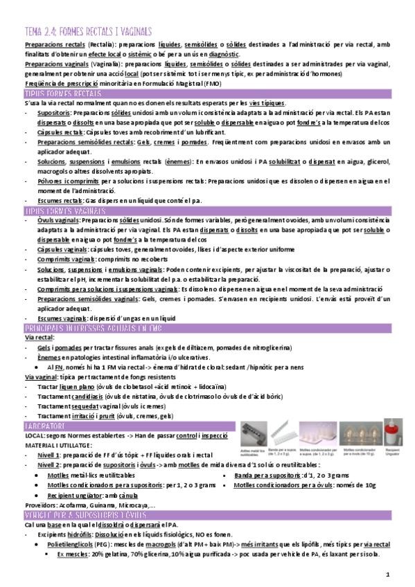 He publicado nuevos apuntes de 5º Formulación Magistral y Oficinal: Formulacio-Magistral-TEMA-2.4.-Formes-rectals-i-vaginals.pdf