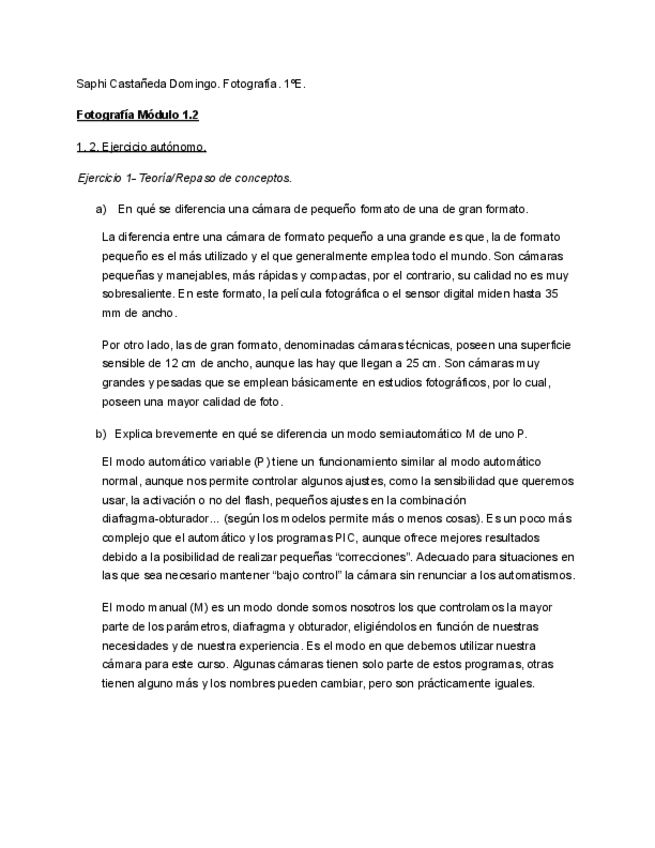 Módulo 1.2 de fotografía. Se trata de varios ejercicios relacionados con los principios de la fotografía de la profesora Aixa Portero. Igualmente, aunque no necesites resolver estas tareas, viene muy bien para estudiar ya que es muy completo.