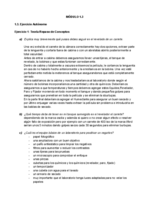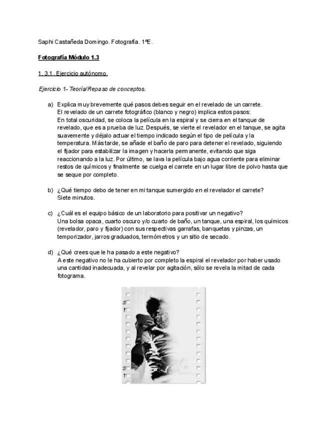 Módulo 1.3 de fotografía. Se trata de varios ejercicios relacionados con los principios de la fotografía de la profesora Aixa Portero. Igualmente, aunque no necesites resolver estas tareas, viene muy bien para estudiar ya que es muy completo.