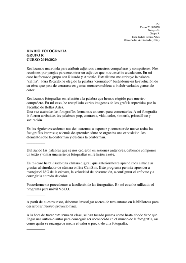 Fotografía - Grupo R. 1ºC (2019-2020)