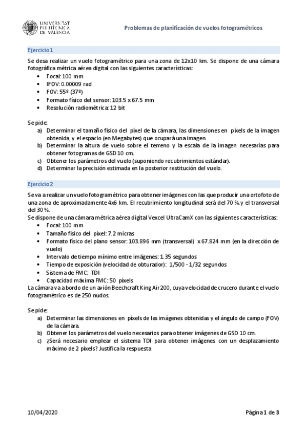 He publicado nuevos ejercicios de 2º Fotogrametría: ProblemasTemaPlanificacionvuelo.pdf
