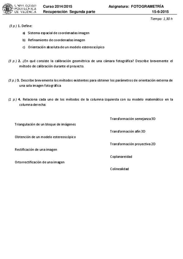 He publicado nuevos examenes de 2º Fotogrametría: EXAMEN-FOTO2014-Recuperacion-parte2.pdf