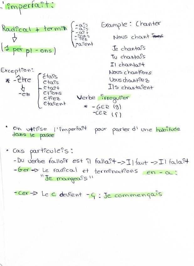 Tiempos verbales en francés con excepciones, como de construye y cosas a tener en cuenta. Imperfecto y passe composé.