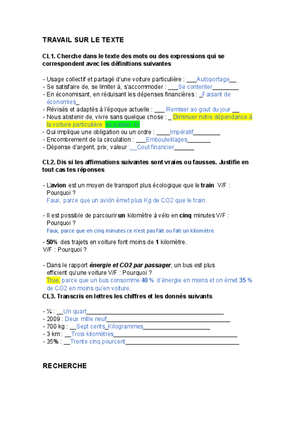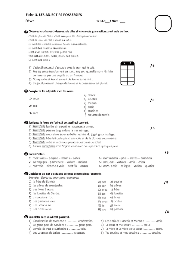 Français – Exercices de grammaire et vocabulaire (1º Bachillerato)