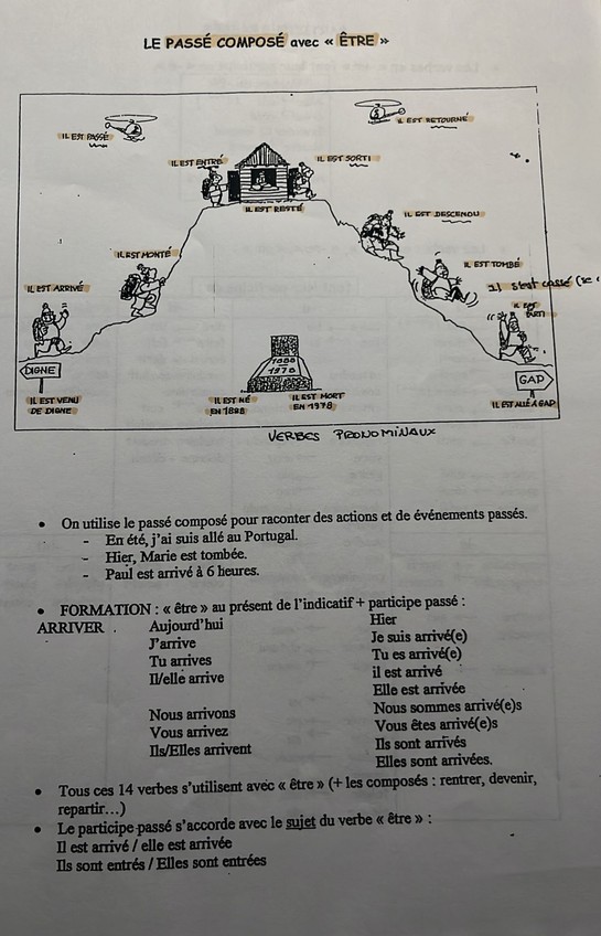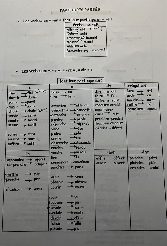 Tiempos verbales en francés con excepciones, como de construye y cosas a tener en cuenta. Imperfecto y passe composé.