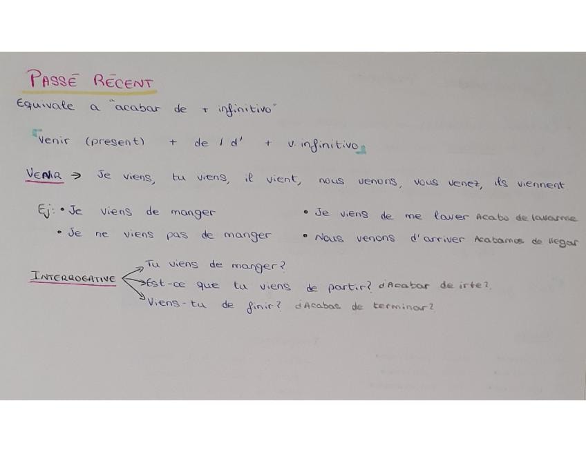 Resumenes de todo el contenido de francés de primero de bachillerato